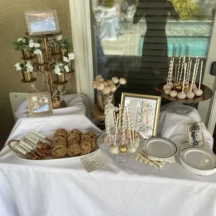 Beautiful gold chairs and Umbrella provided by Black Swan! Decor and setting by Lovingevents.co