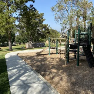We like this park because it is always quiet. The playground is nothing fancy, but my little girls love it. They could spend hours jumping on the bouncy bridge. You can tell the park is a bit older but it has been maintained well. There is a grassy hill to run on and restrooms. The park has a small parking lot (4-5 cars) but it is surrounded by street parking. Overall, this park is a hidden gem.