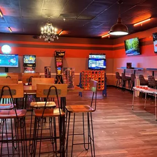My experience visiting for the first time was okay.Upon entering the establishment the female manager did not greet us but told us immediately upon walking through the doors that she saw that we have a water bottle and they do NOT allow any outside food or drink. Not even water ! Because they cannot tell what is inside the bottle, this is one of their rules! Secondly, we had little ones and asked if they can put the bumpers and also provide the stand that assists the little ones by placing the bowling ball on top. The cashier said we could grab on own kiddy stand on the side by the couches, they pointed in that direction.. self service, it sounds like. Also! If you are playing with your kids on the same lane, the kiddy bumpers cannot be set to go down when it is your turn , they stay up for everyone the entire game! Lastly, I wanted to order food and they pointed to the direction of the bar. I ordered my food and was told the worker couldbe taken my order by the lanes but I was already there and directed there so I ordered my wings and half order of fries which came out to almost 25 bucks. They delivered the food to our table in our bowling lane area. Food was good. All they had was Aquafina smal water bottles and I am kinda of a water bottle snob and do not like the taste of Aquafina.. so we just played our 1 game and left to drink our water bottles we had to leave in the car. They charged around 12 bucks a game per person and 6 bucks to rent shoes per person. The odd thing too was they do not allow you to pay in advance like other bowling establishments. They open a tab on your credit card and after you are done, they charge you. Makes it inconvenient if it is busy and you just want to leave when you are done. Double the work. I would prefer to pay for the game, turn in the shoes and leave but for some that want to continue playing for hours without planning, I guess it makes sense you don't have to go back and forth to add an additonal game.Received giftcards and was the only reason we came here. Absolutely no exceptions on outside food and drink, even if a toddler needs their bottle or juice or milk? I would be nice to know they accommodate customers with medical issues or disabilities that require a certain diet.