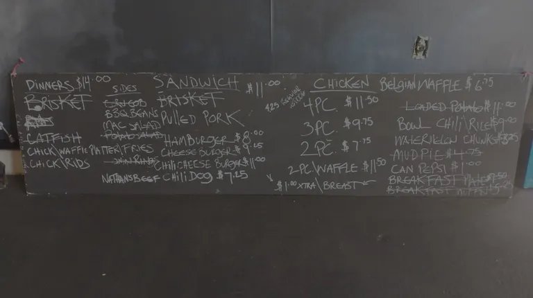 I'm being generous with the third star because I can see this is a startup and they're learning how to do things. I just noticed this place a few weeks ago. If I remember correctly, they say they've been there about a year. Starting with the good, they don't charge extra for using your card. I have a pet peeve about places that do. Now for the rest. You pretty much can't trust the menu; a lot of the items are crossed out. Other items they may or may not have depending on who decided to come in and work. I was kinda in the mood for a burger, but I also have a pet peeve about these flimsy, whimpy burgers most Mom & Pop spots serve. I inquired and was told that their patties are 1/4 lb. Brisket is hard to get right. You have to earn my trust before I try your brisket, so I decided to go for the pulled pork sandwich instead. I knew when he was making it, as soon as he pulled out the mayonnaise, that this wasn't going to be the Southern pulled pork sandwich I was anticipating. I don't recall seeing him grill the bun, but when I first unwrapped the sandwich, it had a buttery sheen and the bun had a nice texture that was perfect for this sandwich. The pork wasn't pulled, it was more like diced. The meat had a nice smokey flavor, but I didn't taste any other seasoning on it. There was no BBQ sauce on the sandwich...definitely not a Southern BBQ pulled pork sandwich. Instead of mayo, I opted for mustard along with the lettuce and relish. It was a good combo. The sandwich was pretty good; far from fantastic. The fries came straight out of a bag, frozen, with a brand name I recognized from a popular warehouse store. They were cooked light, but well enough. I was actually thinking the fries would've been nice on the sandwich, but I didn't combine them. Now the bad. There was only one person working and he was pretty much overwhelmed. I noticed the waffles are made from a store-bought mix and just watching them being cooked, I would say they're close to burnt. As a former restaurant worker, I saw waste in the form of food cost and packaging that probably accounts for the price (my total was $14). I also noticed the employee didn't wash his hands when returning to the kitchen after physically going outside the restaurant to deliver food to waiting customers. In fact, I didn't even see a handsink in the immediate vicinity. Overall, I think they need a lot of help, in management, food preparation, taste, cleanliness and actual staff to run the place. I may check in with them from time to time, but it won't be at the top of my list.