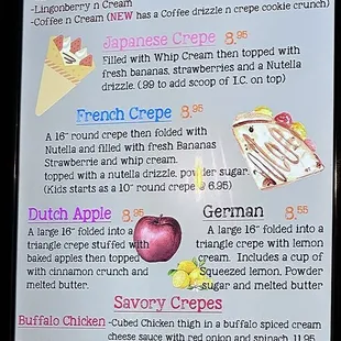 I haven't been here for a while... definitely still amazing! This time I got a French crepe! I didn't know there was different styles! But there's French, Swedish and Japanese. The lady is always so nice and quick with grabbing the orders! I got a banana milk tea.... I typically get strawberry, trying something new! It's so good!! I got the popping bobba/pearls instead of bobba and omg Yum! It's always pretty quite in here, so it would be a nice place to sit and chill for a while... but it's so rainh and it was a long day... so I got my order to go and I also took a picture of their updated menu! Awesome!!!