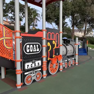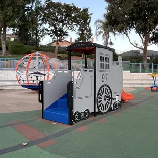 Found this park on a whim and we will definitely be going out of our way to return. The train play equipment is very cute and the girls loved pretending to ride the train. I will note that it is on a big hill and the play equipment is not near any parking. It is a bit of a walk for those who may struggle with hills.