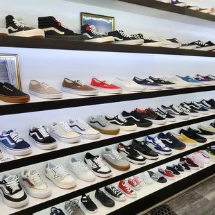 Nice store w good variety of shoes, hats, bags, and other miscellaneous accessories. Large selection of decently priced Vans (great for squats at the gym). Parking could get crowded since the lot is shared w a Walmart, Vons, Flaming Buffet, and other smaller shops.Staff are nice but make sure you have your ID (they'll ask for it every time) if you're paying w card (even if you've been there multiple times).