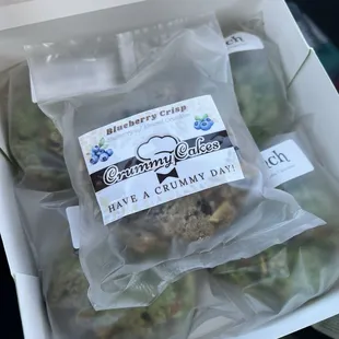 I saw crummy cakes at a Yelp event. I tried their Grinch cookie, which is a seasonal holiday cookie, and was hooked! it has pistachios and Ruby chocolate, which I don't know what that is, but it is the bomb!I knew I had to order cookies from them. The cookies are thick, and flavorful. LITERALLY MAGIC!!! I cannot talk enough about these cookies. They were flexible and were even able to give me an order for Thanksgiving day. I saw on their Instagram that they had another flavor, blueberry crumble, that I wanted to try. They were so kind enough to even give me one as a sample. It was amazing! I finished it in one sitting.EVERYONE!!! I told all my friends and everyone who would listen that these are the best cookies ever!!! I froze the rest to make sure the rest of my box I could last me longer than one sitting.HIGHLY recommend! You gatta try them!!!