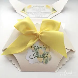 Lasercut gatefold with Kraft cardstock invitation, RSVP card and twine bow.