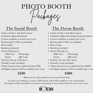 What can I say about these amazing people...just that.. they are amazing! I hired Dovas Photo Booth for my sister in laws baby shower and it was a blast. Everyone had so much fun with all of the props that were offered. They are so professionally and cordial. I have to admit people were so shy at first but once the would go up to the booth they made them feel so comfortable and just have fun! I now have a forever photo booth vendor. Thank you for everything