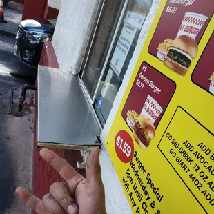 Some compare this place to In & Out. I feel it stands alone. I ordered the double cheese burger. I liked the way the meat was seasoned. The bun was soft and light. Taking that 1st bite, I knew I would enjoy it. I had a coupon for a free drink. The staff was so friendly and welcoming when we drove up. I really appreciated that. A lot of places don't offer that warm, friendly welcome. The staff appears to have fun and enjoy seeing their customers. We were offered their French fries. They were delicious. Not overly salty. They were light and crisp. They were so good we kept eating them even though they were still very hot. I recommend you try this place but don't compare it to In & Out. The environment is like an old school burger hut. I believe it's drive-thru only.