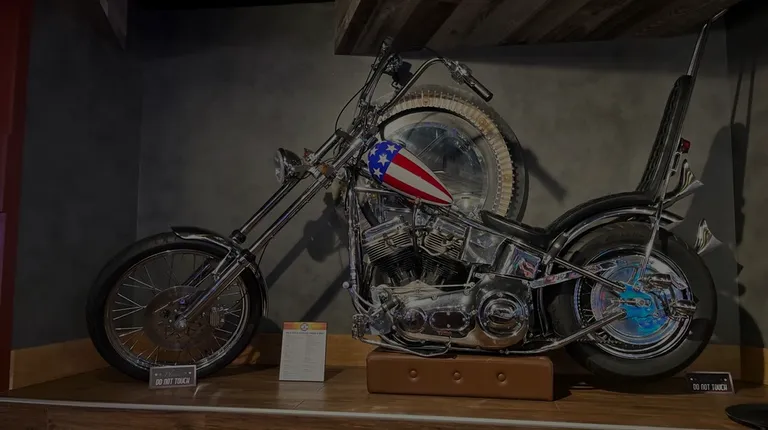 american flag motorcycle on display