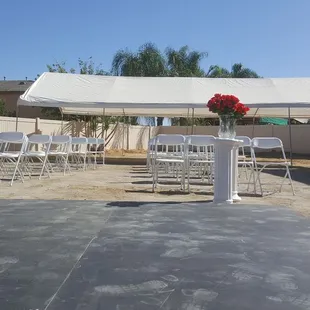 Luis the owner has great customer service. He is attentive to all requests. He answers calls if not he texts. Very cool and friendly guy. I rented 2 tents (20x40), 112 chairs, 14 tables with linen tablecloths, and portable potty for $830. He setup Friday before my event. The day of my event there was a gush of wind. I called him to ask if he can secure the tents more and he came within 30mins added some extra sand bags and all was good. Definitely will be a returning customer for all our family future events.
