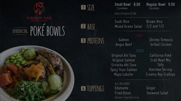 TLDRPoke: 4/5In full honesty this place is probably one of the worst poke spots I've been to. However, if you're on campus, your options are pretty limited. Desperate times call for desperate measures. In those desperate times, I call for hibachi San to deliver me pokè. And hibachi San will in turn, deliver a bowl of fresh-ish fish (I think it's fresh but it's also drenched in marinade, probably to keep it from going bad) with some very suspect sushi rice (this is part of panda's policy for foods, sushi rice is traditionally room temperature, but panda can't do this because it goes against their health safety policies. Thus, they serve white rice instead, at a very toasty 135 degrees Fahrenheit). Their pokè is actually not so bad. It puts the OK in pokè. I would come here if you're stuck on campus, and don't have the time to drive a mile or more to much better places.