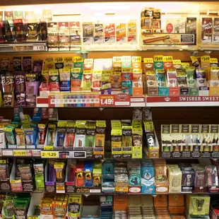 Nice selection of cigars. I just wished they carried more of the Natural by Drew Estate brand. There is hookah, ecig and other supplies, as well as regular cigarettes. They stock Davidoff and Dunhill smokes too, which is nice since gas stations usually don't. When I'm in the area, the closest place that sells Dunhull and other specialty cigarettes is the 76 gas station off of the 15freeway/Ontario exit.Also it's true how Ashley said below that there are always these junker cars in the parking lot, but I've never had any problems with the other customers.