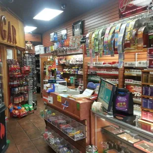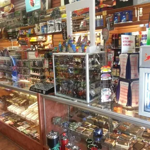 Overpriced everything and whoever works the night shift kept walking up to the window of my car once I parked which was alarming. There was no one in the shop so maybe he was either 1.) bored or 2.) confirming I was going to walk in since they have "smoke shop parking only" signs up. Either way bad for business and super creepy. I purchased a Montecristo cigar for my husband and a small cigar for me, $33 total was crazy. Definitely avoid this place if possible.