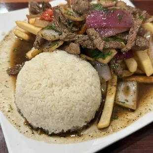 Lomo Saltado and rice chaufa
