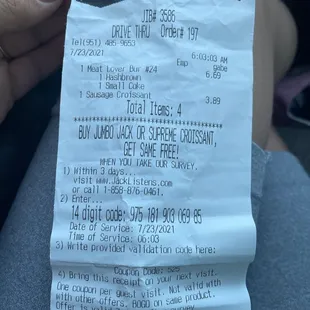 Waiting in line they took a while I just got a few things They forgot my hash brown the only thing I wanted the rest was for my bf My bf went knocking on the door they ignored him I found a guy cleaning outside that worked at Jack He went to tell them they forgot my food And this guy tells us we have to go wait back in line to get our food they forgot A waste of time people have to get to work on time They didn't apologize When we pulled up to the window they walked away n then just gave us the bag.Not coming here again When u drive up to the window u can see the I side was all dirty as well