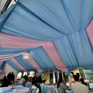 Boho baby shower in lg tent. Tent, tables, chairs, linens all from Julie's