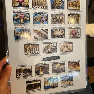 Menu of fresh rolls