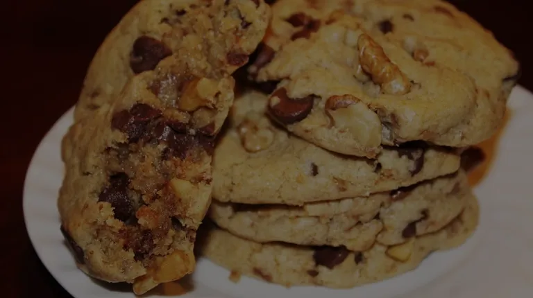 a stack of chocolate chip cookies