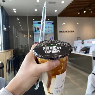 I got the new coffee from Krak Boba and it's a very bitter I highly recommend adding honey or agave to it. I'm a huge fan of Krak Boba but I think we should add a little bit of sweetness to this drink. Kind of just taste like instant coffee. However, the king crème brûlée is Super good. I highly recommend if you like sweet drinks.The staff is very friendly, and the decorous beautiful will continue to return :)