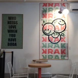 Krak Boba is a good chain that is expanding in many SOCAL cities. My previous experience was in Rancho Cucamonga, followed by one on 17th in Santa Ana. Both of those locations turned out excellent drinks with great attention to detail and made us fans of the brand. This particular store in Riverside is in an area that's a bit dicey, a dirty, often crime-ridden zone with lots of homelessness, so lock the doors. Inside the store, the appearance is not much different if you're acquainted with the brand. Similar decor, selfie areas, and illustrated menus. The staff were friendly and helpful, 5 stars for that. Unfortunately, the outcomes were shy of the mark for different reasons. Hers was supposed to be fizzy, but the lack of ice to cool down the ingredients simply wasn't there. Mine had a similar issue with the fruit being warm from the blender, perhaps? Either way, we were both a little disappointed. She'd order differently in the future, but I had selected something familiar, so hopefully, next time, it'll come out better? Anyhow, we're glad to have a store closer than 15+ miles away.