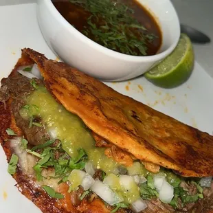 Amazing Birria taco, adobada taco, and chorizo taco.