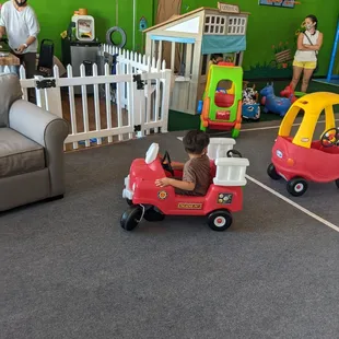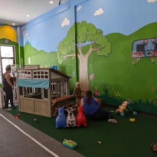 We had so much fun - the grandkids had stimulated minds and lots of exercise! The place is clean and requires masks and socks.There are a variety of stations and each is filled with themed toys. Example the grocery store has a register, carts, phony food; the fire station has a fire truck, blocks, fireman outfit and more; diner has register, dining counter, kitchenette, and more...everything is so cute! There is a large climbing station, playhouse, mage Eric are, a farm. Cars and a street around town.There's a place to have snacks (bring your own), a clean restroom - nice day out for the kids!