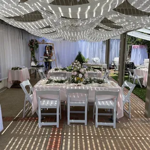 This review is long overdue. I used Lynette's Tables and Chairs in June of 2023 for my son's graduation party. I started planning early and made payments in advance. My experience was a breeze from start to finish. The online ordering system is simple and easy to use. The customer service was great! They provided the draped canopy with lighting, I got an additional canopy for the food area. I also got tables (round & cocktail) , chairs, table covers and chaffing dishes. Last minute, I decided to have overflow seating and put a candy station and bar in the garage area. Lynette's provided the draping for the garage to create a nice space. I am a picky person and they made my life easy. It was a one stop shop for all my needs. They are hard working people and they do great work! I would definitely recommend and I would definitely use them again! I appreciate this business for bringing my vision to life!