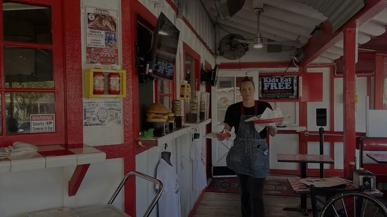 We were heading to San Diego and wanted to try the popular burger spot in the Old Town Temecula. We were at the restaurant after 1pm on Sunday 01/07/23.The restaurant looks like an old fashion hamburger stand.There is a very small parking structure shared with Texas Lil's. We were lucky to get the spot.Before entering, there was a note posted on the window stating the 8% inflation charge. The waiter told us to sit anywhere. The tables and booth were very tight and small. You can also sit at the stools along the window area.Ordered: 3 sodas1 -classic 1/4lb hamburger with friesI -classic 1/4lb cheeseburger fries1 -1/2lb charbroiled chicken with upgraded onion ringsThe burgers were completely dry and burnt. The hamburger patty size was much smaller than the bun. The cheeseburger was little bit bigger but smaller than the bun. The chicken burger was tender but not as flavorful. It was little burnt. The fries were okay. The onion rings were bland and kind of greasy. Overall, the food was okay. I paid $75.52 + generous tips.The one thing that I liked was the branded burned on the buns.The service was ok, and the ambiance was nice.