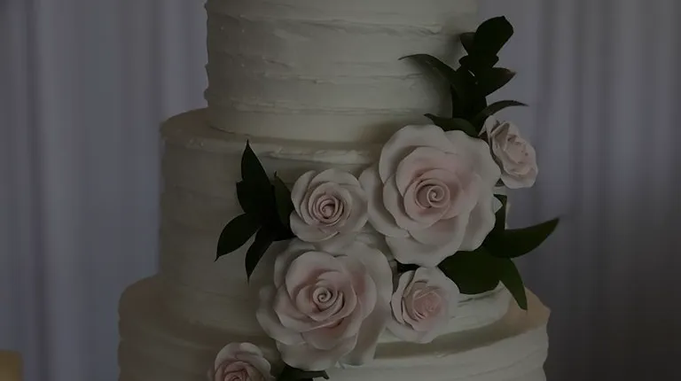 4 Tier wedding cake. Can be buttercream or fondant covered. Serves 130