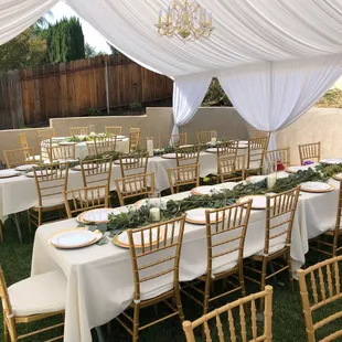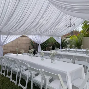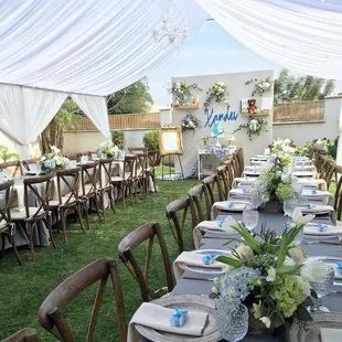 Has such an amazing experience working with Antonio and team for my Baby Shower. This review is long over due. We had a tent with draping & chandeliers. Also, rented tables, chairs and linens.