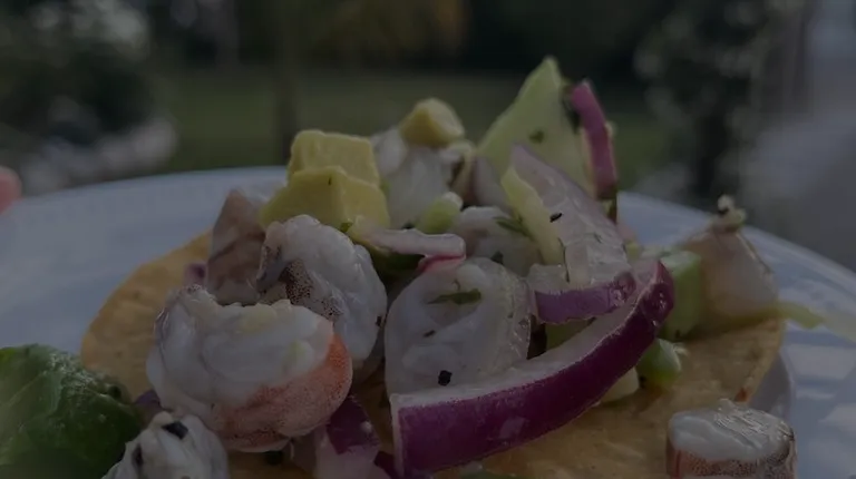 Shrimp Ceviche. I put the tostadas like that. They give 'em to you in a fancy sealed bowl that's perfect for meal prep.