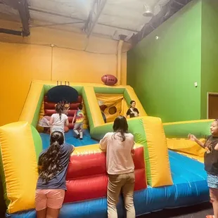 I had my son's 5th birthday party here. It was easy booking everything online for the party package. I received an email confirmation and someone called me the week before the party to confirm the guest count and finalize my food order. Weeks before the party, I called to ask questions as to what I can bring, decorations, etc. The staff on the phone were super friendly and helpful. Likes: -Pay one fee and everything is done for you: decorations, food, set up/clean up. -Two different rooms with various jumpers and things to do for all ages. -The most affordable place I could find for a private party. -Friendly staff.-Good food.-Clean restrooms.Dislikes:-Small eating room.-Have to order food from Mountain Mikes, the restaurant they partner with. Quality of pizza and chicken wings were good but expensive.-Very specific things on what's allowed in terms of decorations.-Annoying online waiver. Why do my guests have to make an account to sign a waiver?The staff assigned to help set up and decorate was not good at decorating, cutting cake, or communicating the time limits of the party. I provided him with the centerpieces and stickers I wanted on the table. The centerpieces were sloppily placed (some tables didn't even have it while other tables had 2-3) and he didn't even bother placing the stickers on the table. I brought two cakes and specified which cake I wanted cut first. He didn't follow my directions and cut the other cake. Due to the poor communication, everything felt extremely rushed. What matters most is that my son had a great time! We enjoy coming here for open jump, too. I would do future birthday parties here.