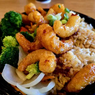We stopped here on our way to TJs and found it to be surpringly delicious. We ordered orange chicken beef and broccoli and edamame. It was plenty for me and my 3 kids. They enjoyed the orange chicken the most. The beef and broccoli had a nice ginger flavor to it. The orange chicken was crisp and tasty. The staff were all nice.