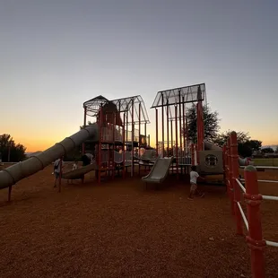 Really great playground with lots of levels and slides and things for the kids to climb on and several benches around the play area for parents. Only downside is that it's all wood chips so just make sure the kiddos are wearing close-toed shoes :) This park has a decent amount of parking and was easy to find.