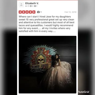 Our review is long overdue! We have had Primos Tacos cater a handful of parties at our house and Our Daughters Quinceañera (for 200 people). Their food and meats are always on-point and they always go out of their way to make sure our guests are happy and being taken care of. Primos Tacos is our #1 choice for taco catering. If they are booked, we usually change the food or date to fit Primo's schedule. Its really hard to book another taquero once you find a consistently solid choice like Primos Tacos.