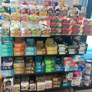 Lots of great options for pre workout and protein supplements. Plenty of protein snacks to choose from. Amazing nutrition shop!