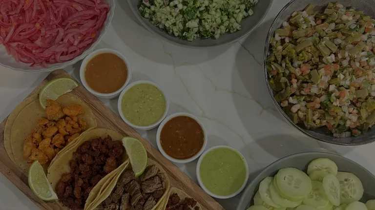 Condiments and Sides: -Spicy Pickled Onions w/ Habanero -Nopal Salad -Onion & Cilantro -Fresh Cucumber