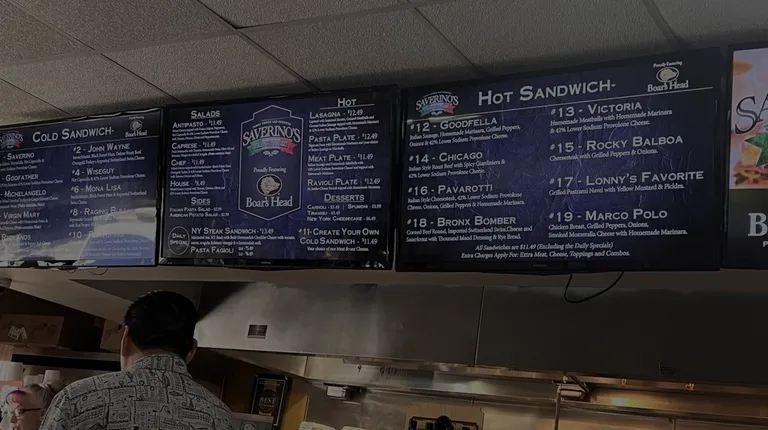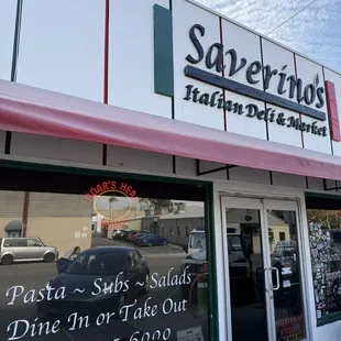 Saverino's store front.Italian Deli & Market featuring Boar's Head Meat. You can purchase other take-home items as well.