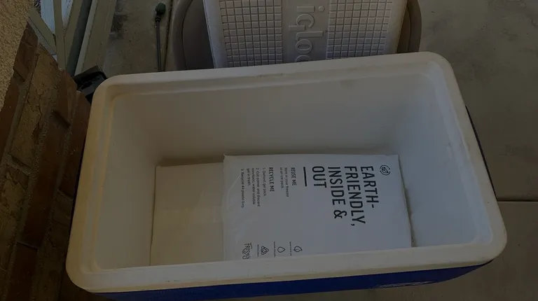 Meals in a paper bag, ice chest with cooling packs about 6 feel away on a chair not the floor.