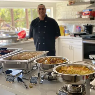 What a terrific find! Shibuya is an excellent caterer and we had a great experience working with him and his team. He was very easy to work with and was willing to cook a variety of foods, being very flexible with the menu and our selections. He showed up on time, prepared everything so it looked nice, was labeled and stayed warm for our guests. We had 30+ people and had plenty of food leftover, with everyone very full and everyone commenting on the quality and the taste of the food. We did pastas, salads, meat skewers and some pulled chicken and pulled pork sandwiches. Everything was delicious. A great experience and a great value for the food & service.