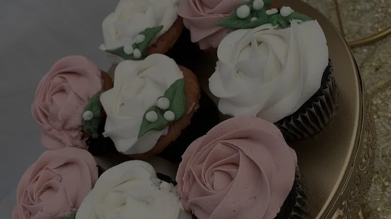 cupcakes with white and pink frosting