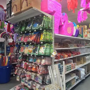 Tons of things to get ready for parties. They have tons of themes, custom piñatas, aisles of candy to choose from, a variety of party supplies!!! They also blow up balloons. I just wish they had more items to improvise with or create your own ideas. Like yard signs or neutral themes to mix and match.