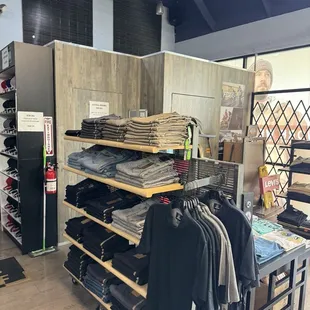 Solus Clothing is truly hidden gem in Norco! This store is always stocked with workwear. Let me preface that this place is very affordable. The selection of brands include: Dickies, Ben Davis, Carhartt, Allstyle, Pro Club, Shaka, Obey, HUF and many more. You'll find some streetwear items sprinkled here and there as well. They have a single fitting room to try on clothes with a mirror. The staff do not greet you here. They also don't really go out of their way to help you out. From my experience, it seems like it's really just one worker most of the time. Their exchange / return policy is very weird as well. Keep that in mind when shopping here. You definitely want to try on the clothes before you buy because of this. It's definitely a cool little spot to pick up some essentials for your wardrobe. Check it out if you have the time!