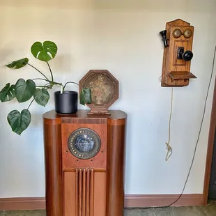 a record player and a table