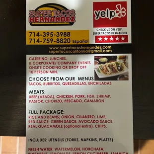 I highly recommend Super Tacos Hernandez! Luis was informative and responsive in setting up the menu and providing the details. Jose and Elvira were helpful and accommodating throughout their time at our home. The Mexican fare was delicious and authentic! I would definitely use them again!