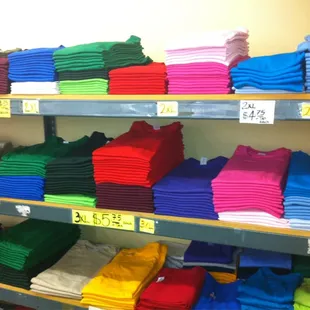 I come here with my brother because they gave a great selection of plain t-shirts in a whole bunch of colors. Pretty cheap too. They have all the sizes you can think of. I think they even go up to 6X.