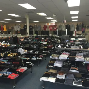 Not sure why this place has so many poor reviews- I've always have a good experience coming here... employees are always friendly and greet me when I walk through the door. There's all kinds of blank shirts and Dickies clothing in stock, really big selection! The only reason I'm not giving a full five stars is some of the shirts I bought last year were defective- some of the stitching wasn't done right and the shoulders or armpit area of the shirts were coming apart- but it looks like they got a bad batch and I haven't had a problem since. Prices are average, but if you get the 3-for $ deal then you save a bit. Overall, great place for me and my small business...