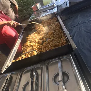 We were so impressed by the quality of the food and the service. Found them on yelp and so very glad I did. They took care of everything from setting up, cooking, dishing it out and cleaning it up. They even left us the leftover food (there wasn't much as it was so good!) Perfect way to have a party and perfect people to use. I would highly recommend them.