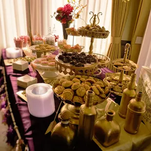 Sweets table with fresh flower wedding cake (i did the flowers)