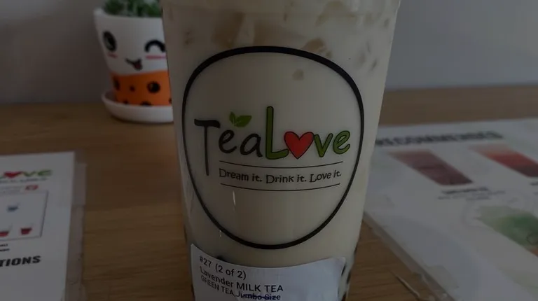 This was my first time trying TeaLove and I got the coffee milk tea with boba and coffee jelly.Milk tea (23oz) $4.95Honey boba $0.55Coffee jelly $0.55Tax $0.47Total $6.52The drink was good, texture of the boba and sweetness just right. The coffee jelly could have a little stronger flavor.Service was quick and friendly. Shop was clean and there is plenty of parking in the shopping center.