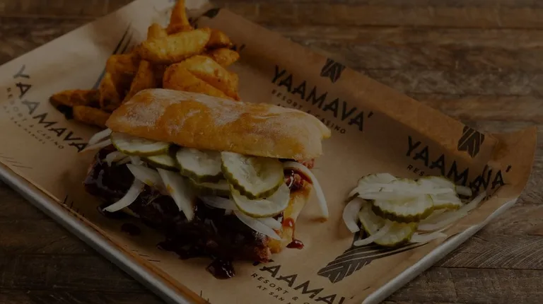 Completely shocked, we came for a concert and decided to have a meal afterward. In summary, it is an enclosed food court inside the casino. Amazing, delicious meal! Service was quick and efficient. The brisket was very savory, and the BBQ sauce was just impressive I! We will definitely be back! Ambiance, it's a casino ;)If you're a sports fanatic, you'll love it here they have huge screens all over.